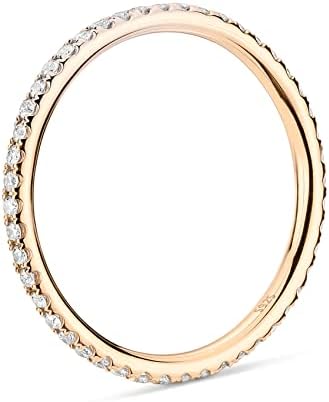 PAVOI 14K Gold Plated Solid 925 Sterling Silver CZ Simulated Diamond Stackable Ring Eternity Bands for Women